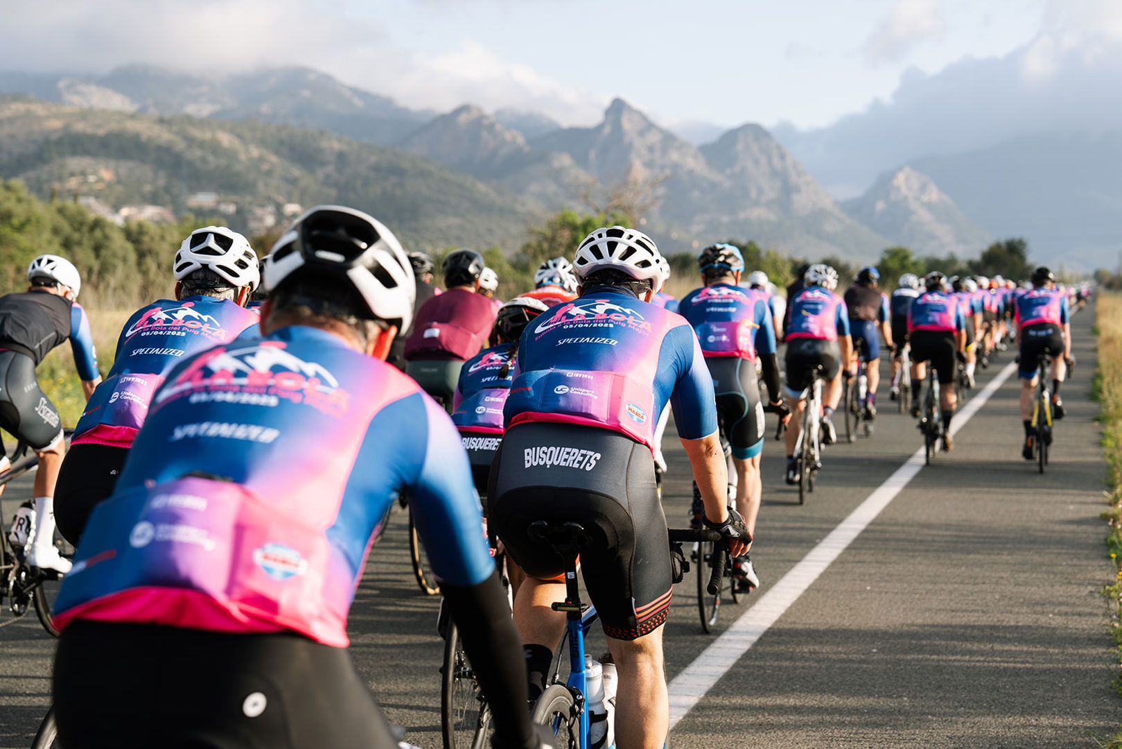 Vroeg tijd voor het summum van de trip, met zonsopkomst begeleidt Rompelberg onze groep naar de start. Daar voegen we ons bij 500 andere deelnemers, allemaal gehuld in hetzelfde kleurrijke shirt. Onder escorte rollen we over de hoofdweg. Hoog in de verte zien we de kenmerkende witte bol en dus de finish, het hoogste punt van Mallorca (1445 meter), en onderdeel van Spaans/Amerikaanse radarinstallaties.