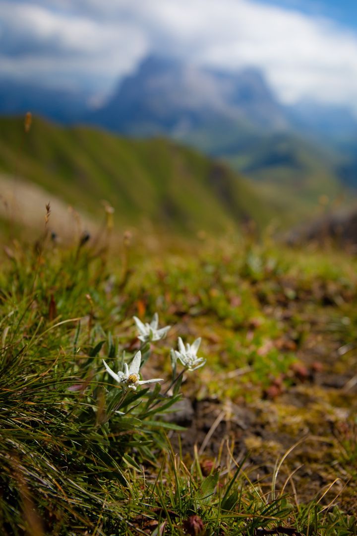 De volgende klim dient zich aan. Ook al zijn het slechts 260 hoogtemeters over een gravelweg, op zo’n 2500 meter boven zeeniveau is dat toch behoorlijk werken. Het uitzicht en de overweldigende natuur zorgen echter voor prima afleiding; langs het pad zien we zelfs de zeldzame Edelweiss groeien! De klim brengt ons bij de Riffugio Alpe di Tires, die met zijn wit-rode kleuren een baken in het landschap vormt.