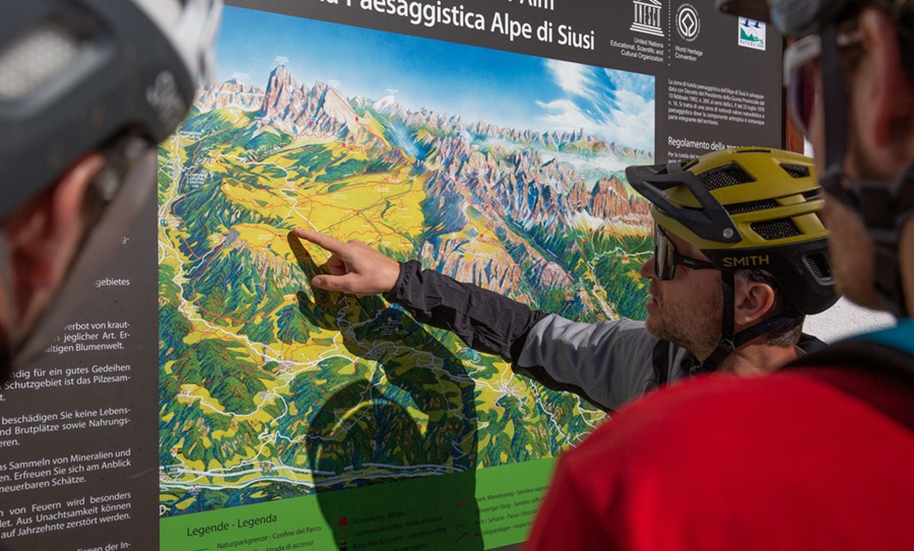 Ook een MTB-guide is aan te bevelen, alleen al omdat lang niet alle paden geschikt zijn voor mountainbikers. Al kun je in de verschillende bikeparks (Sassolungo, Paganella, Fassa etc.) en bijvoorbeeld via platforms zoals Komoot en Trailforks heel wat trails en afdalingen vinden – op eigen risico!