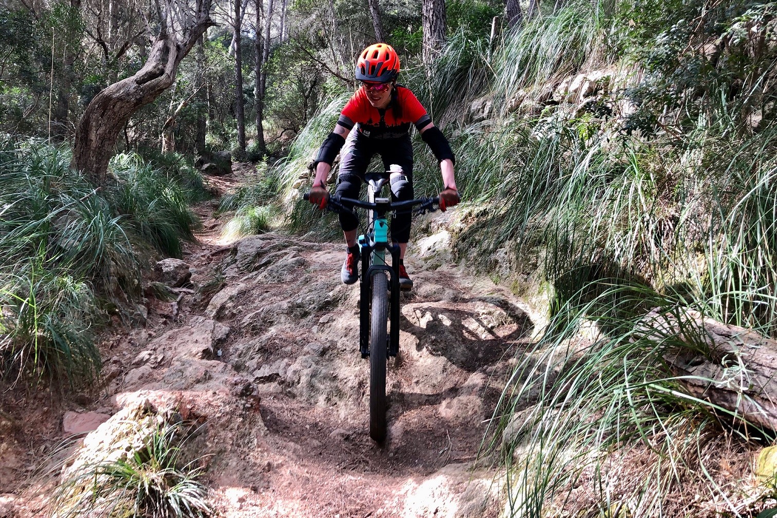 Morgen, als ik met een gids op pad ga, doe ik mijn kneepads om. De losse ondergrond en rotsformaties hebben me verrast en vragen om een fully. En, als de Serra de Tramuntana, zoals de ongerepte bergketen langs de noordwestkust heet, met toppen tot 1.445m voor je ligt, is een gids een aanrader.