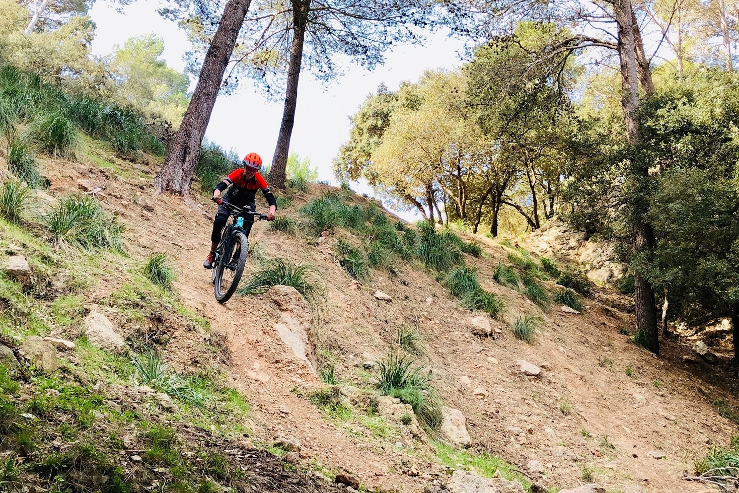 We starten met een steile stenen helling. Ruig, maar een o zo leerzaam speelveld. Mijn focus ligt steeds vijf meter voor me om een rijlijn te zoeken. Als we het ‘magic forest’ in schieten heb ik de smaak te pakken, voel me comfortabel op mijn fiets, polijst ik elke bocht mijn skills bij en heb ik ook nog tijd om van het decor te genieten. Nog nooit zag ik zulke grote en zo veel olijfbomen bij elkaar.