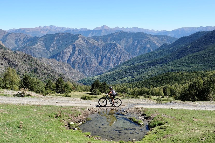 Zo buffelen we zeventien kilometer lang omhoog naar Cap de La Socarrada (2.266m). Volgens Francisco biedt een e-MTB uitkomst voor bikers die niet op eigen kracht omhoog kunnen óf willen kunnen trappen. “Veel fietsers denken dat een elektrische mountainbike suf is. Ten onrechte: ook op een e-MTB moet je behoorlijk aan de bak. Als je in de bergen uitsluitend de turbo-stand gebruikt, dan sta je al na een paar uur met een lege accu langs de kant.”