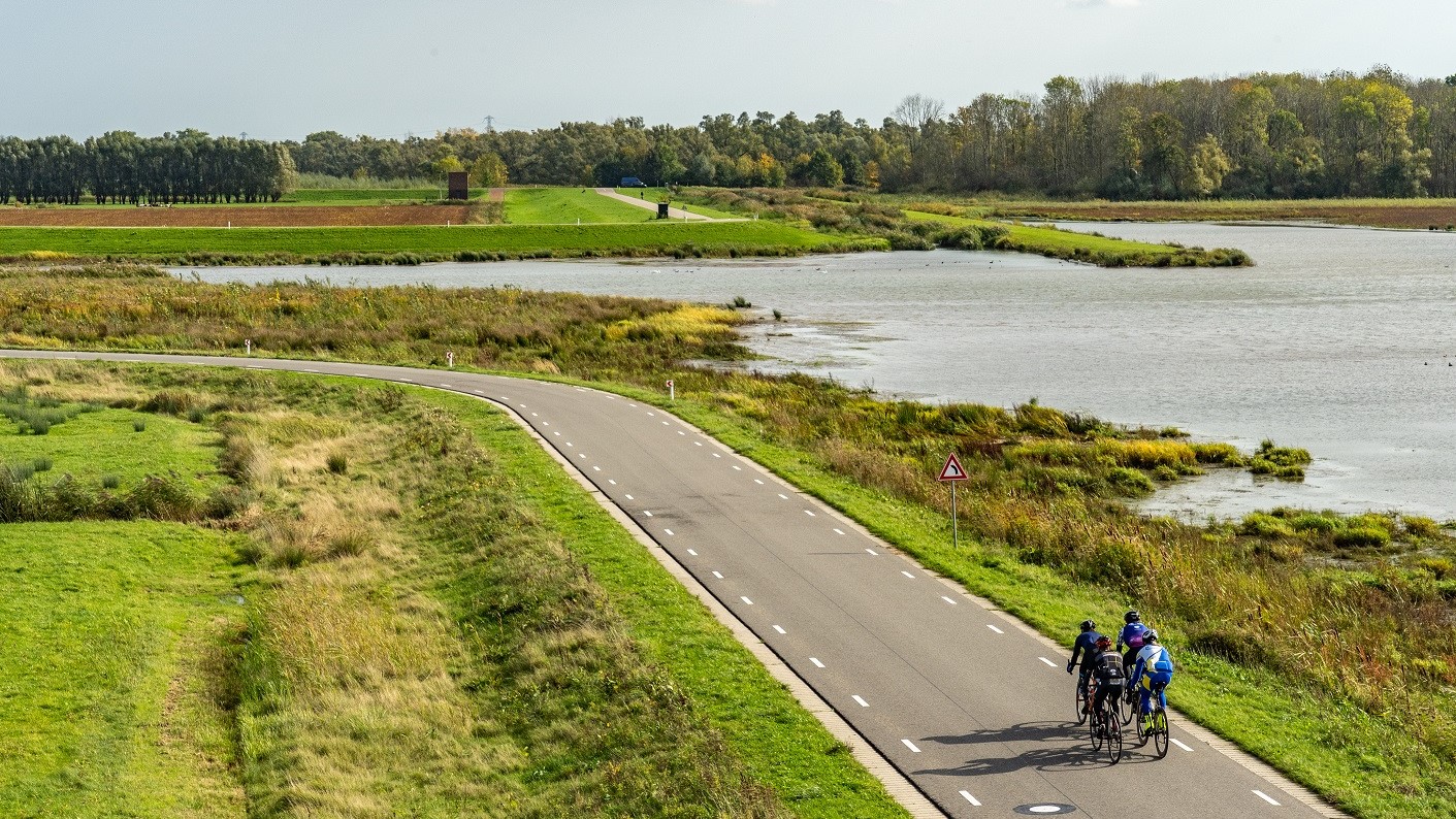 Daar volgt een vermakelijke afwisseling van kronkelende wegen, fietspaden en bruggetjes. Kuddes Koniks paarden, Schotse hooglanders en waterbuffels grazen in de weilanden, terwijl zwermen trekvogels overvliegen.