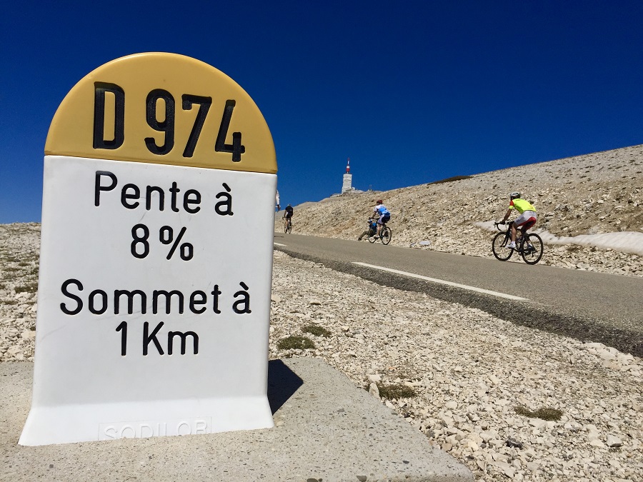 De Ventoux kan van drie kanten beklommen worden. Bédoin is de klassieke kant. De aanloop is redelijk mild, maar daarna volgen 10 zware kilometers door het bos. Continu boven de 10% en vrijwel rechtuit. Bij Chalet Reynard is het even wat vlakker, voordat de lastige 6 kilometers door het beroemde kale maanlandschap worden afgelegd.
