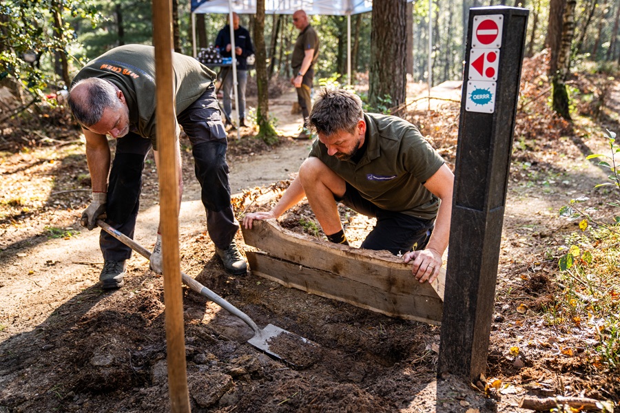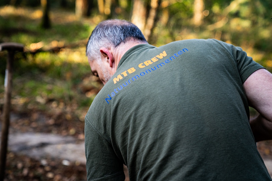 “Van met de hand aanleggen en onderhouden zijn we naar machinaal aanleggen overgestapt: de hovenier van Natuurmonumenten is voor ons met een kraan heel voorzichtig aan de slag gegaan. Hierna konden we snel grotere stappen zetten. Dit werk is later overgenomen door Daniel Wijsmuller, een bekende MTB-route shaper die vaak samenwerkt met Patrick Jansen, de bekendste routebouwer van Nederland.”