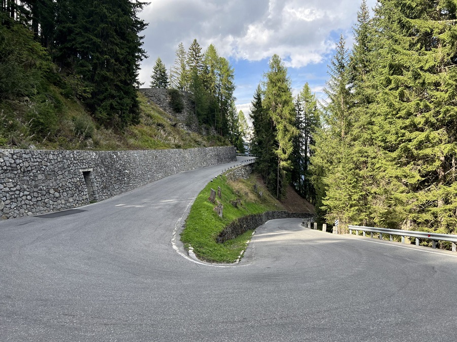 In het prachtige naaldbos win je al veel hoogte. De haarspeldbochten volgen elkaar in rap tempo op. Het stijgingspercentage komt hier vaker boven de 8 procent. In de verte komt het Ortler bergmassief steeds dichterbij. Wij genieten van het uitzicht. Het is lekker rustig zo begin september en soms voel je je één met de omgeving."Hier begint het met aftellen: 48 ‘tornanti’ brengen je naar de top"