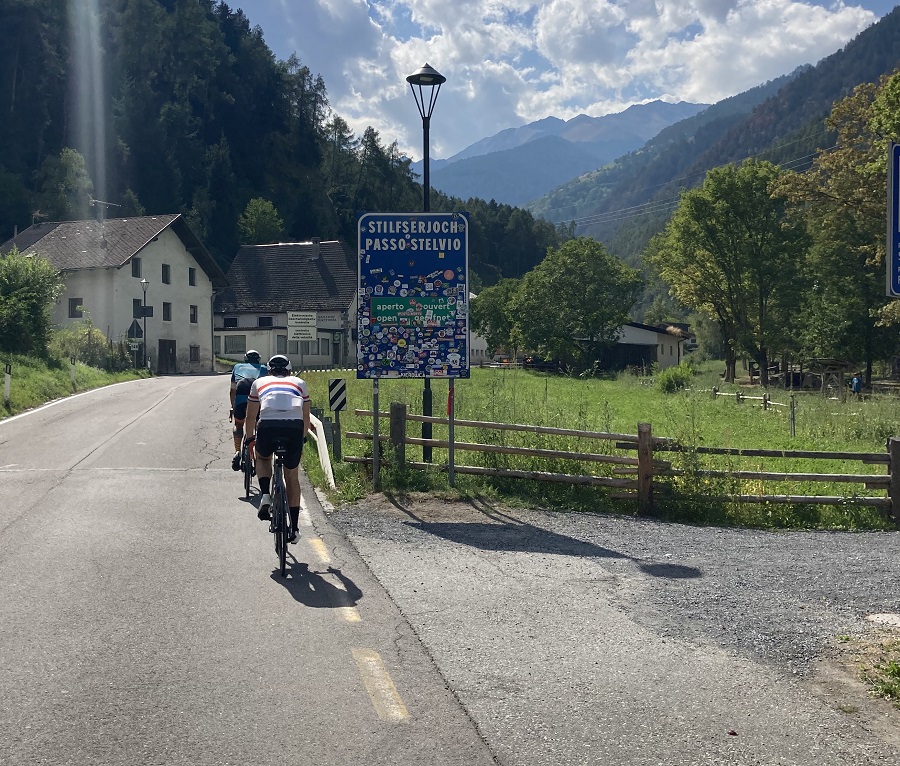 Vanaf Bormio gezien beklim je de Passo dello Stelvio via de Umbrailpas, die 250 meter onder de top ligt op de grens van Italië en Zwitserland. We overbruggen 1.278 meter over een lengte van ruim 18 kilometer. Een gemiddeld stijgingspercentage van 7,1 procent moet ons naar de top brengen van de Umbrailpas op 2.503 meter."Zijn we goed genoeg getraind om ruim 24 kilometer met een gemiddeld stijgingspercentage van 7,4 procent te klimmen? "