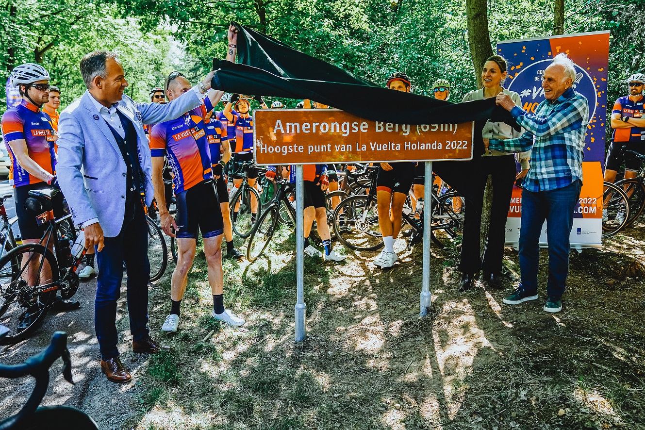 Precies honderd dagen voor het begin van de Spaanse etappekoers zijn allerlei festiviteiten rond La Vuelta Holanda op de Utrechtse Heuvelrug gestart, te beginnen met de onthulling van een bord op de Amerongse Berg. Waarom? Op deze alom bekende heuvel van 69m hoog gaan de profs strijden voor de eerste punten van de Vuelta bergtrui. Wielerlegende Joop Zoetemelk en oud-wielrenner Stef Clement onthulden de markering van het hoogste punt in de Nederlandse etappes van de Vuelta.