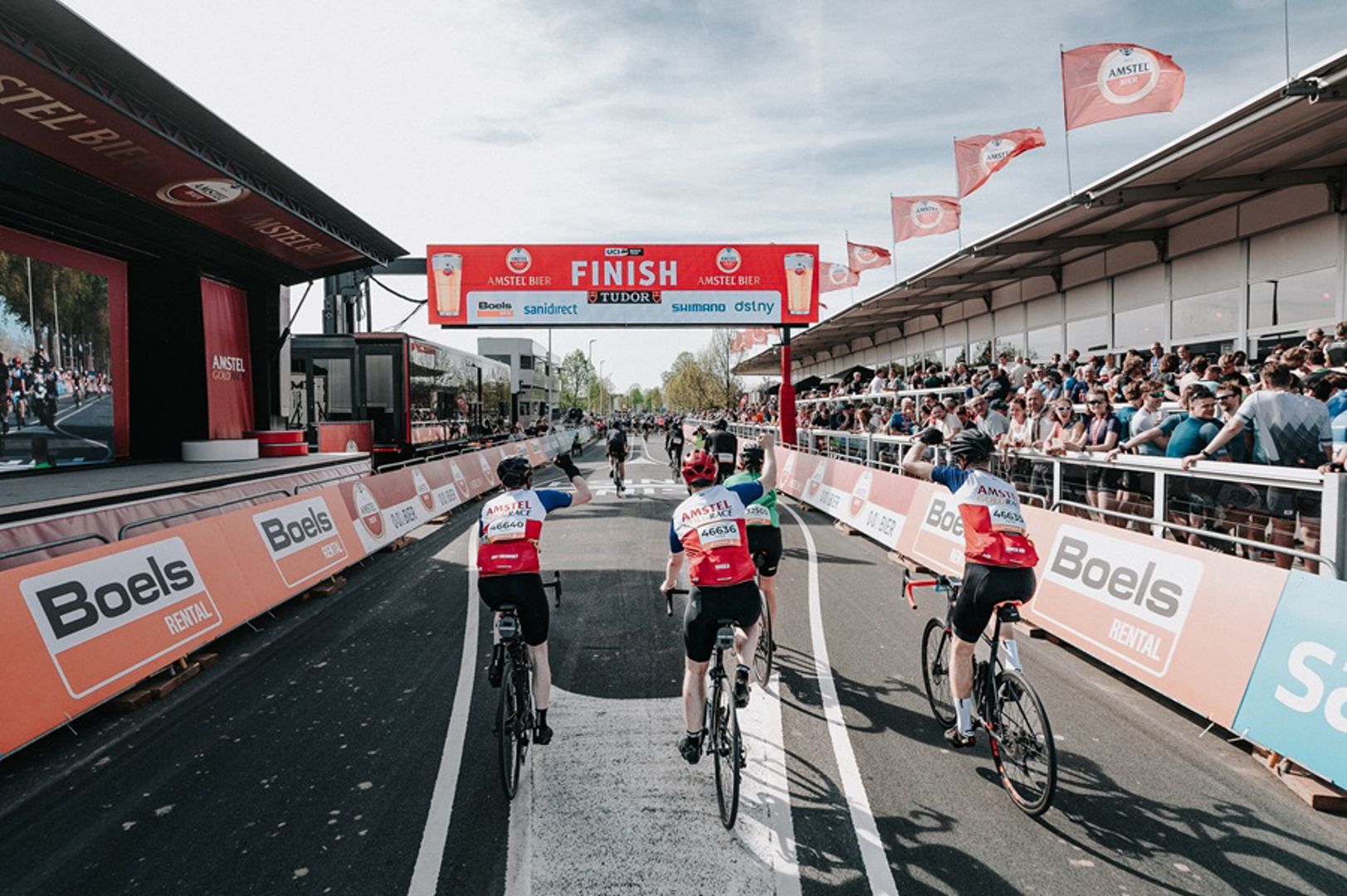 ‘Unique selling point’ is natuurlijk eerst en vooral het parcours. De tocht gaat goeddeels over de route die de profs een dag later ook afleggen. “De laatste 600 meter rijden de deelnemers door de finishstraat van de profkoers, die entourage is uniek. Dezelfde speakers die zondag de koers voor de beroepsrenners van commentaar voorzien, halen de toerfietsers binnen.”