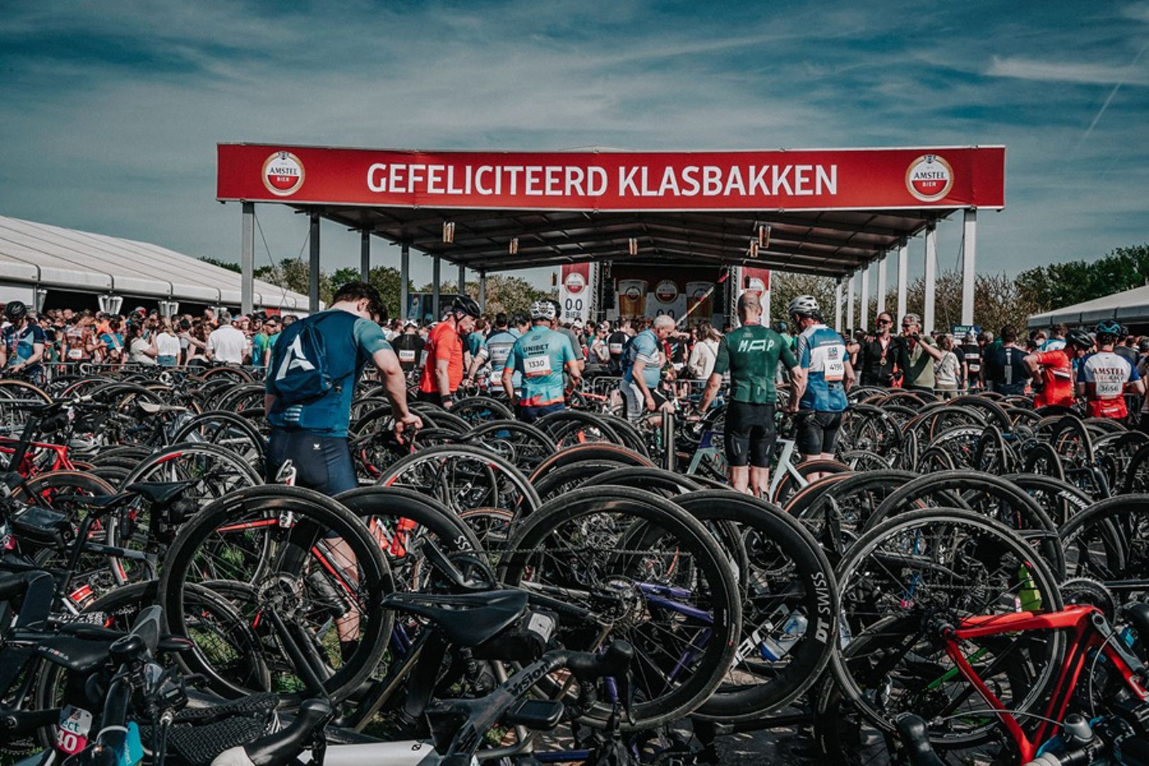 Met zulke aantallen is een professionele organisatie vanzelfsprekend vereist. En kom je er niet met wat vrijwilligers. “Al onze mensen krijgen een vergoeding.” En dat zijn er nogal wat. “We hebben naast die speakers nog honderden andere medewerkers.” Er zijn alleen al 200 verkeersregelaars, en 60 man bij de verzorgingsposten. Bij de start en finish lopen zo’n 25 beveiligers rond. “En dan is er natuurlijk nog het entertainment, de dj’s onderweg, de artiesten bij de finish, het licht en geluid.”