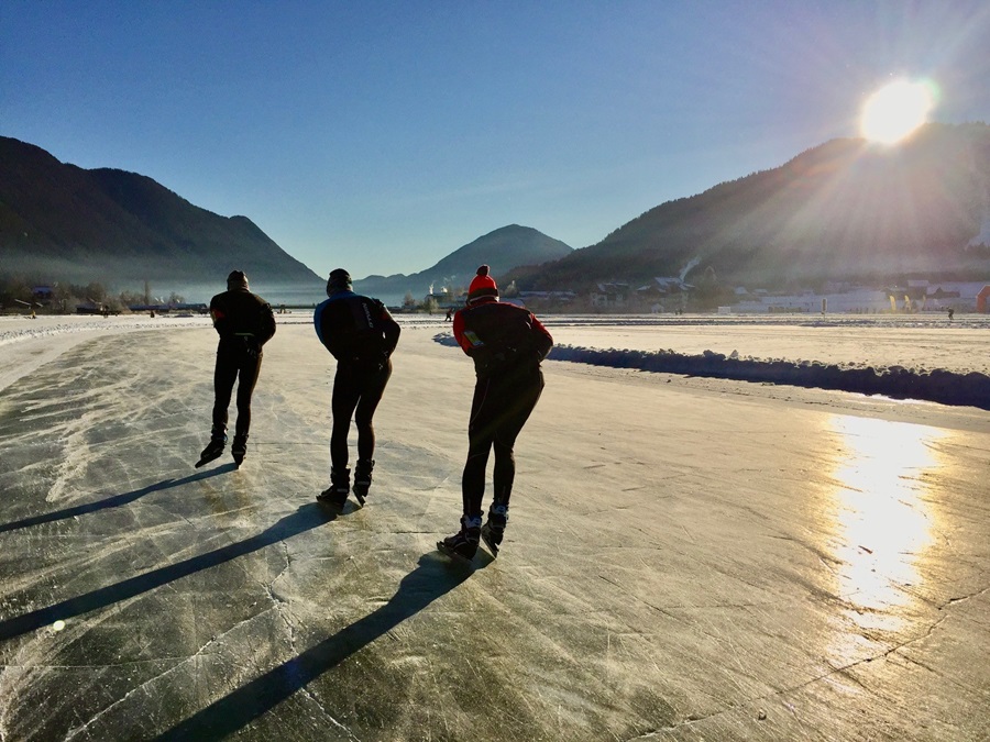 Gelukkig is er een plek waar je wel de Tocht der Tochten kunt rijden: de Weissensee. Dit Oostenrijkse bergmeer verandert iedere winter in een centimeters dikke ijsvloer. Hierdoor zakken duizenden natuurijsliefhebbers steevast af naar Karinthië om daar eind januari mee te doen aan de Alternatieve Elfstedentocht Weissensee (AEW)."Gelukkig is er een plek waar je wel de Tocht der Tochten kunt rijden: de Weissensee"