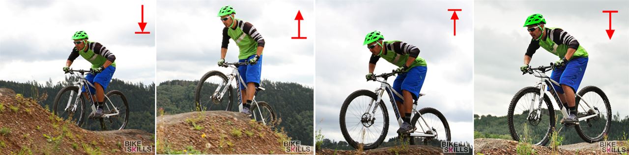 Als je over obstakels rijdt gebruik je deze techniek om de wielen te ontlasten. En als je in volle vaart een grote kuil in duikt kun je de banden aan de grond houden door je bovenlijf vlak voor de rand omlaag te brengen (Tiefentlastung) en de fiets vervolgens weer aan de grond te drukken (Hochbelastung). De ware pumpmeister pompt zelfs in bochten.