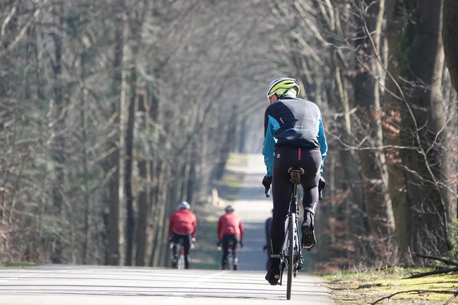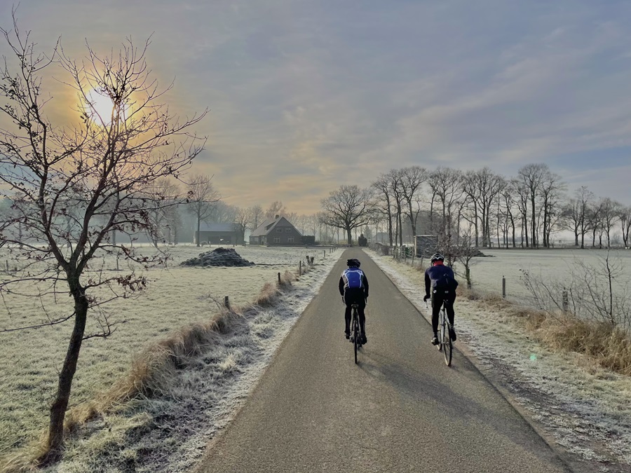 6. Routekeuze: kies routes die beschut zijn en vermijd zoveel mogelijk vieze/glibberige wegen. Zo heb je in het bos minder last van de wind en zijn de wegen in de polder vaak snel opgedroogd.