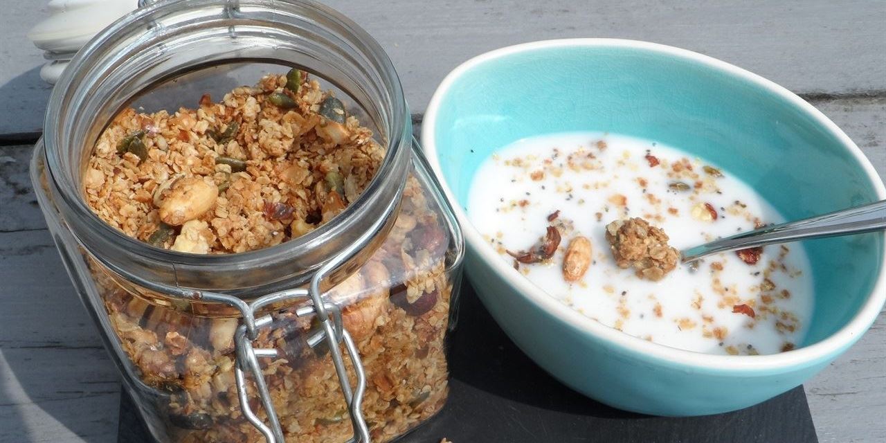 Een zeer voedzaam ontbijt. Extra eiwitten krijg je binnen van de yoghurt/melk, noten en hennepzaad. Langdurige energie haal je uit de havermout en de honing zorgt voor snelle energie.